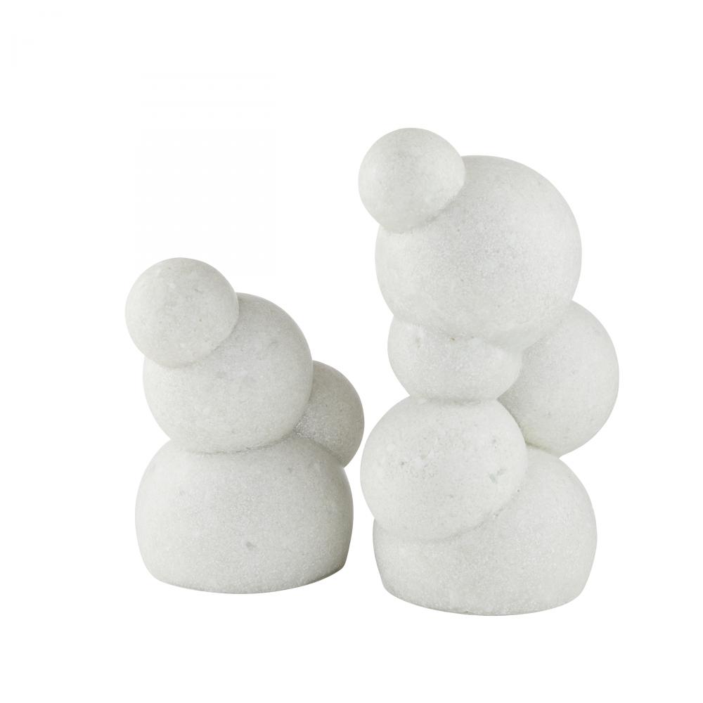 Polished spheres of ivory glass stone composite stack to recall molecular structures or organic bubbles. Each sculpture is equally impactful when displayed alone or paired. Finish will vary.