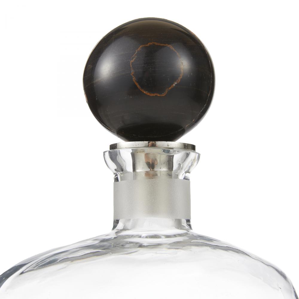 Reminiscent of classic mid-century barware, our Eaves decanters are crafted of clear leaded glass adorned with etched accents. Bengal marble stoppers accent the narrow necks. Finish will vary.