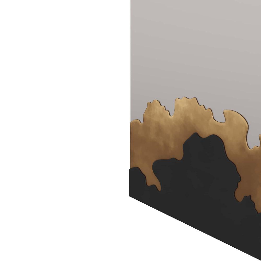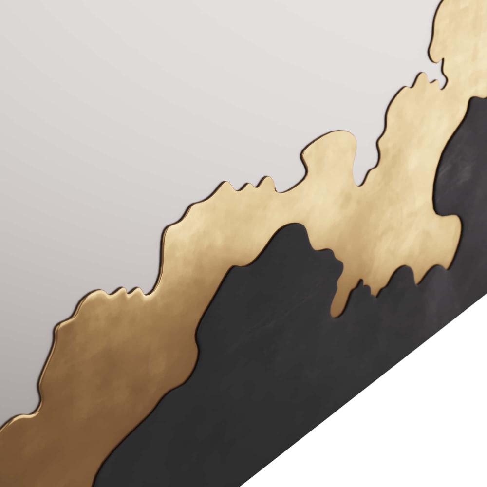 A NEW MIRROR WE JUST HAVEN'T SEEN BEFORE. THE MIXED METAL FINISHES ON THE CLOUD SILHOUETTE BASE HOLD THE ANTIQUED MIRROR TOGETHER. THE LOW HORIZON LINE OF THE BRONZE AND ANTIQUE BRASS BASE LEAVES UNENCUMBERED REFLECTION FOR THE UPPER AREA. ARTWORK AS WELL AS A USEFUL PIECE, USE IN A POWDER ROOM OR OVER A HALLWAY CONSOLE TO MAGNIFY SPACE AND LIGHT. THE MIRROR IS FITTED WITH A CLEAT FOR HANGING. FINISHES WILL VARY.