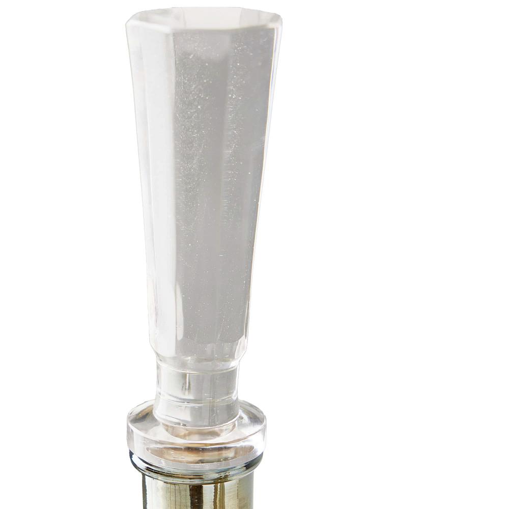A SOPHISTICATED WAY TO SERVE UP FAVORITE LIBATIONS, THIS PAIR OF TALBANY DECANTERS MAKE FOR COMPANION SILHOUETTES. CREATED IN CLEAR AND SMOKE LUSTER GLASS, WITH FACETED, DECORATIVE GLASS STOPPERS, THE SIZABLE VESSELS IMPART A MOODY MODERNITY TO ANY BAR. FINISH WILL VARY.
