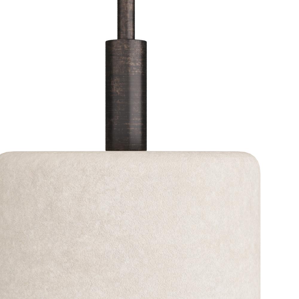 The natural textures of burnt iron and sandblasted marble make Xena eye-catching in any setting. Crafted with a slender rod and matching iodized iron shade, its clean geometric shape is anchored by a rounded marble base. Clear silver cord and three-way rotary switch.