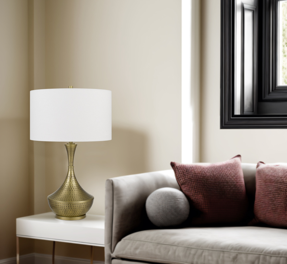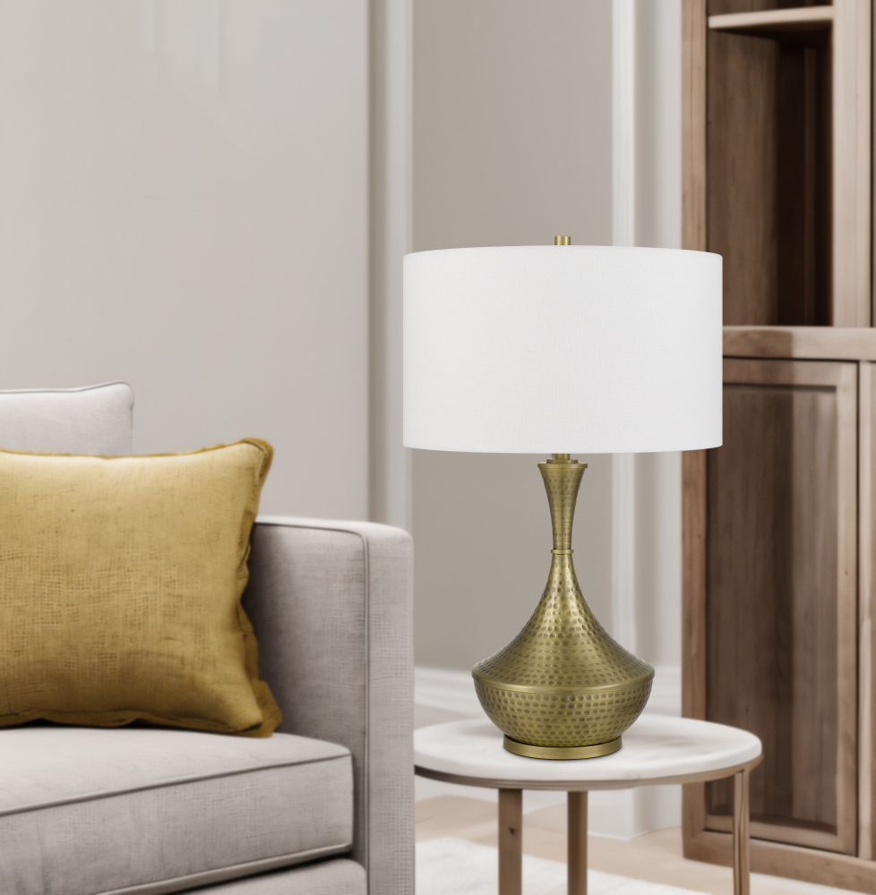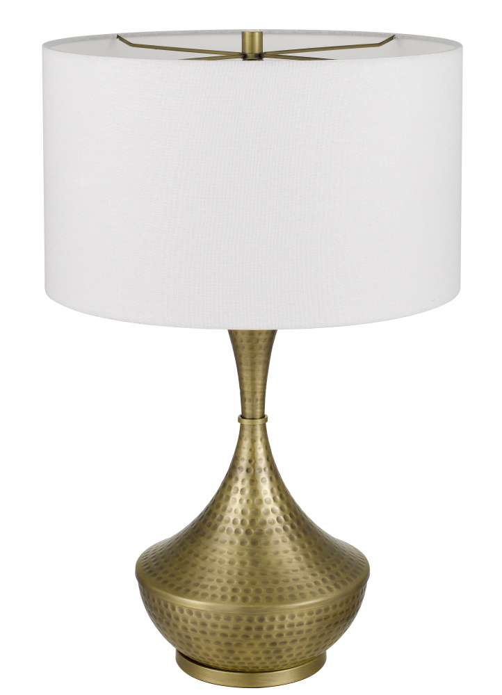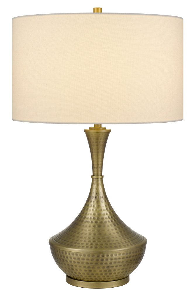 150W 3 way Hove hand hammered metal table lamp with drum hardback fabric shade