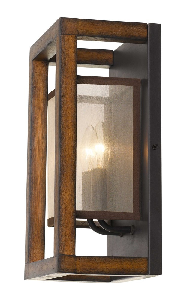 40W X 2 Rubber Wood Wall Sconce With Organza Shade (Edison Bulbs Not included)