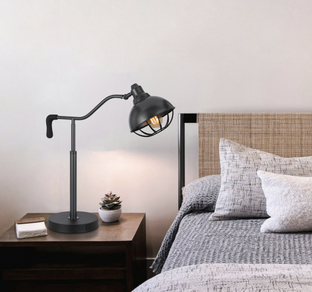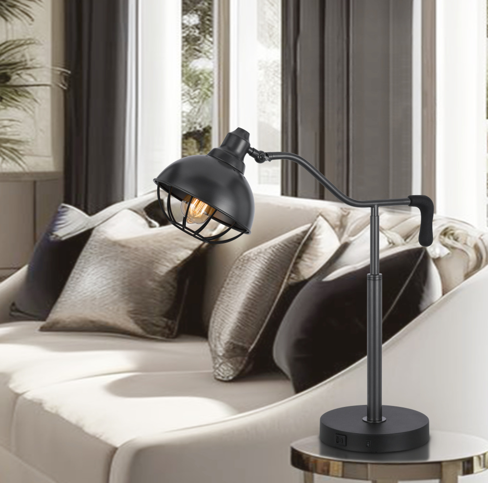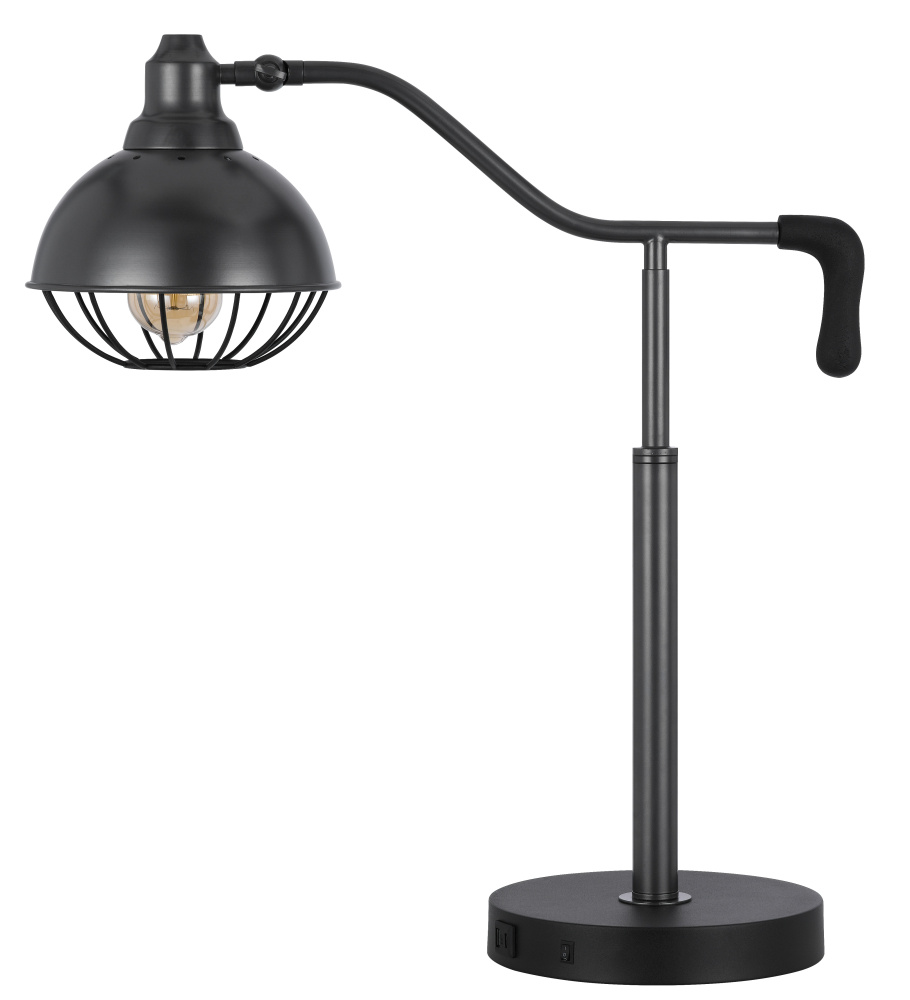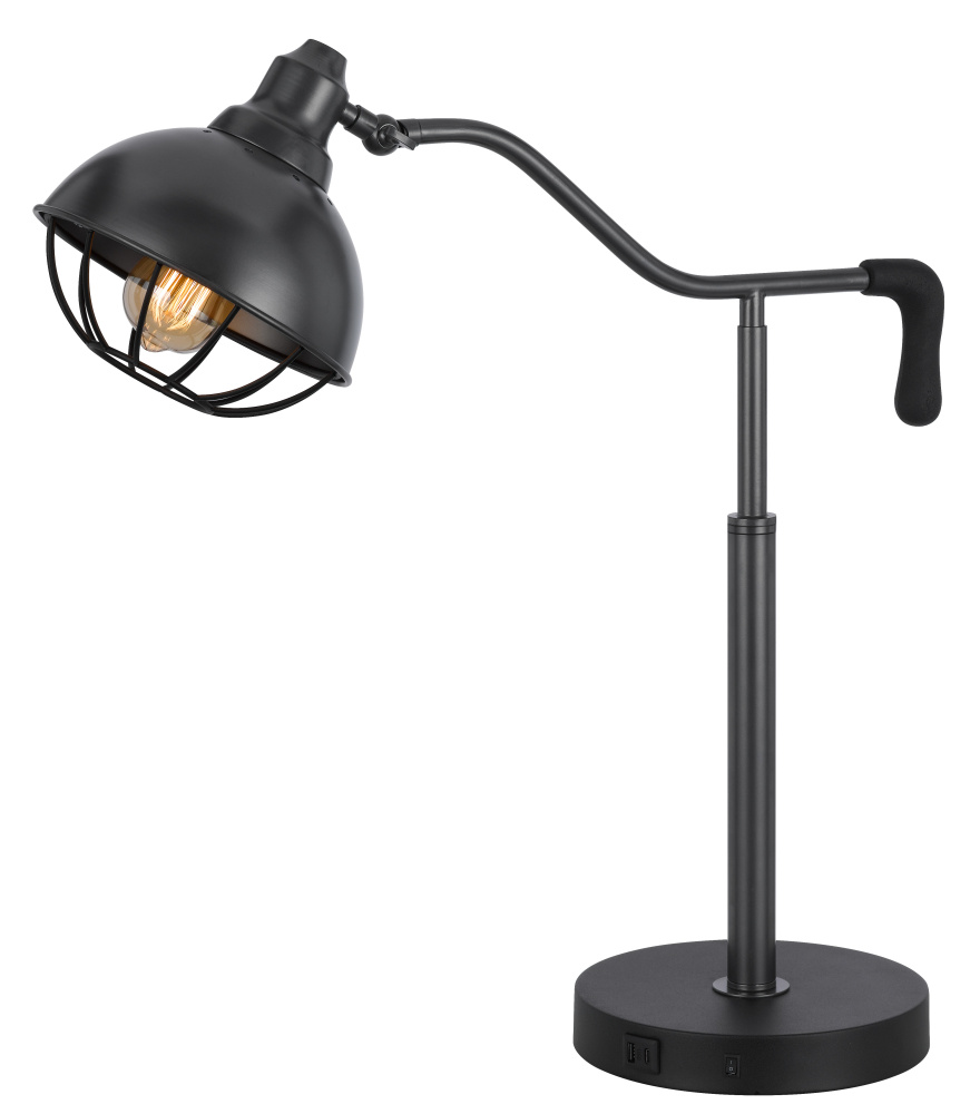 60W Taloga metal desk lamp with adjustable caged shade & 1 USB & 1 USB C charging outlets.