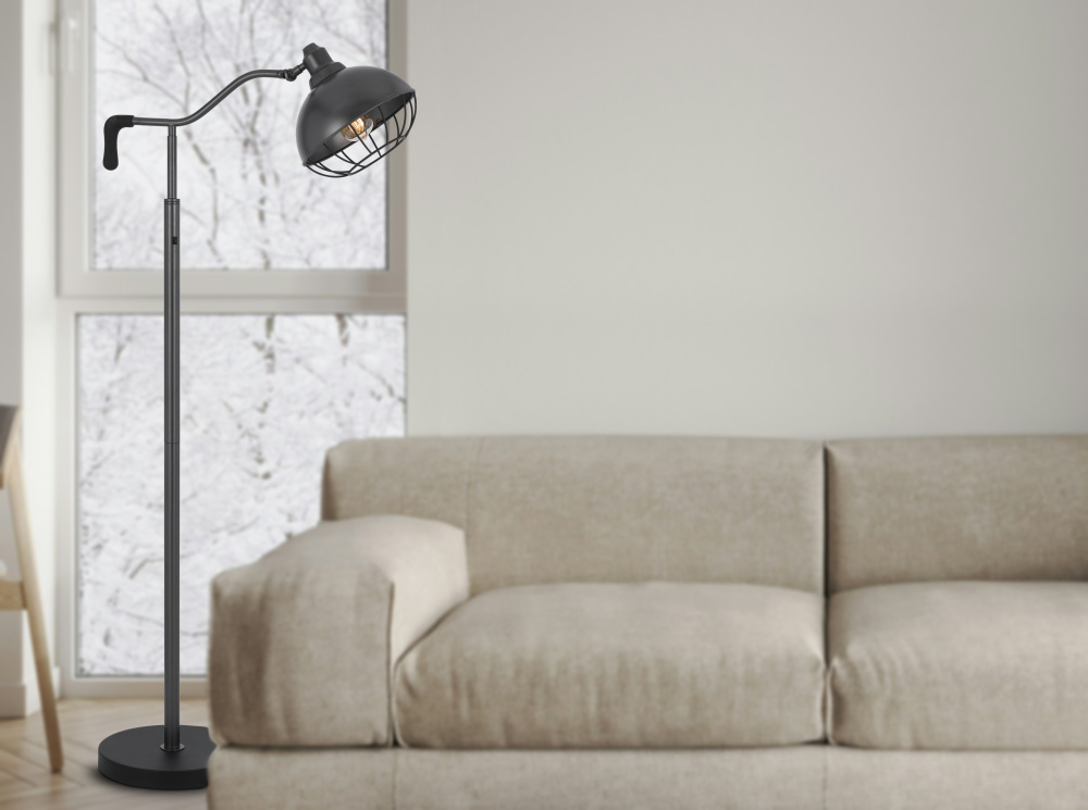 60W Taloga metal floor lamp with adjustable caged shade. (Bulb not included)