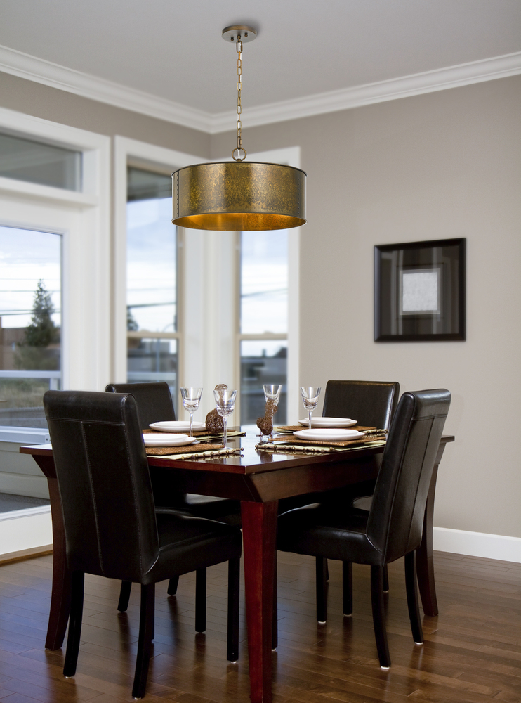 Three Light Round Metal Hanging Pendant with Distressed Finish