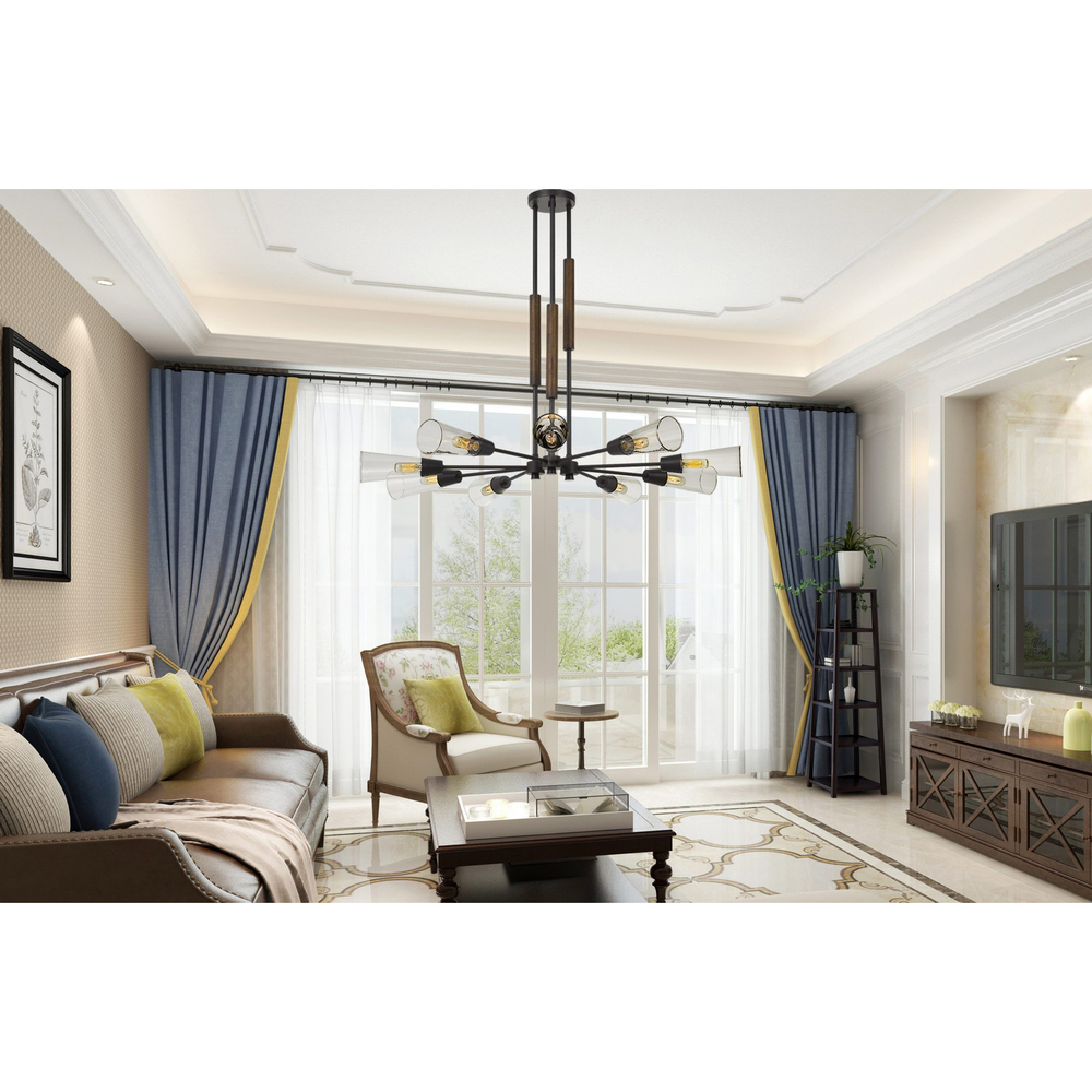 60W X 9 Vasto Wood/Metal Chandelier With Glass Shade (Edison Bulbs Not included)