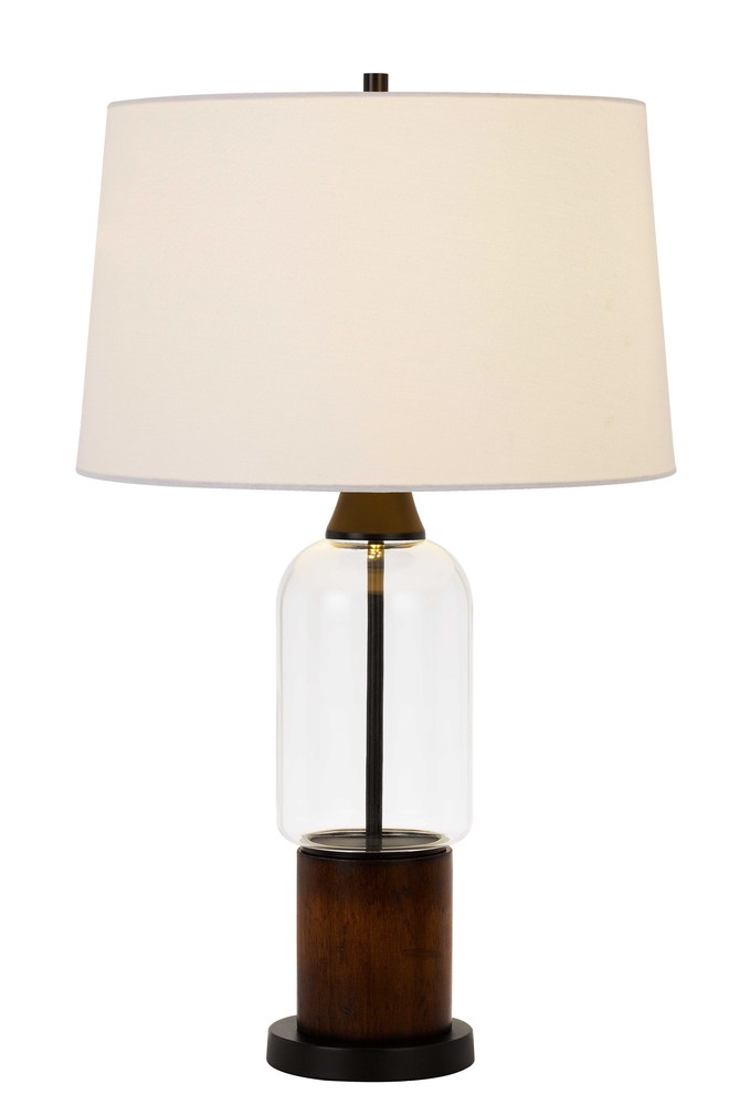 30" Height Glass and Pinewood Table Lamp in Wood Finish