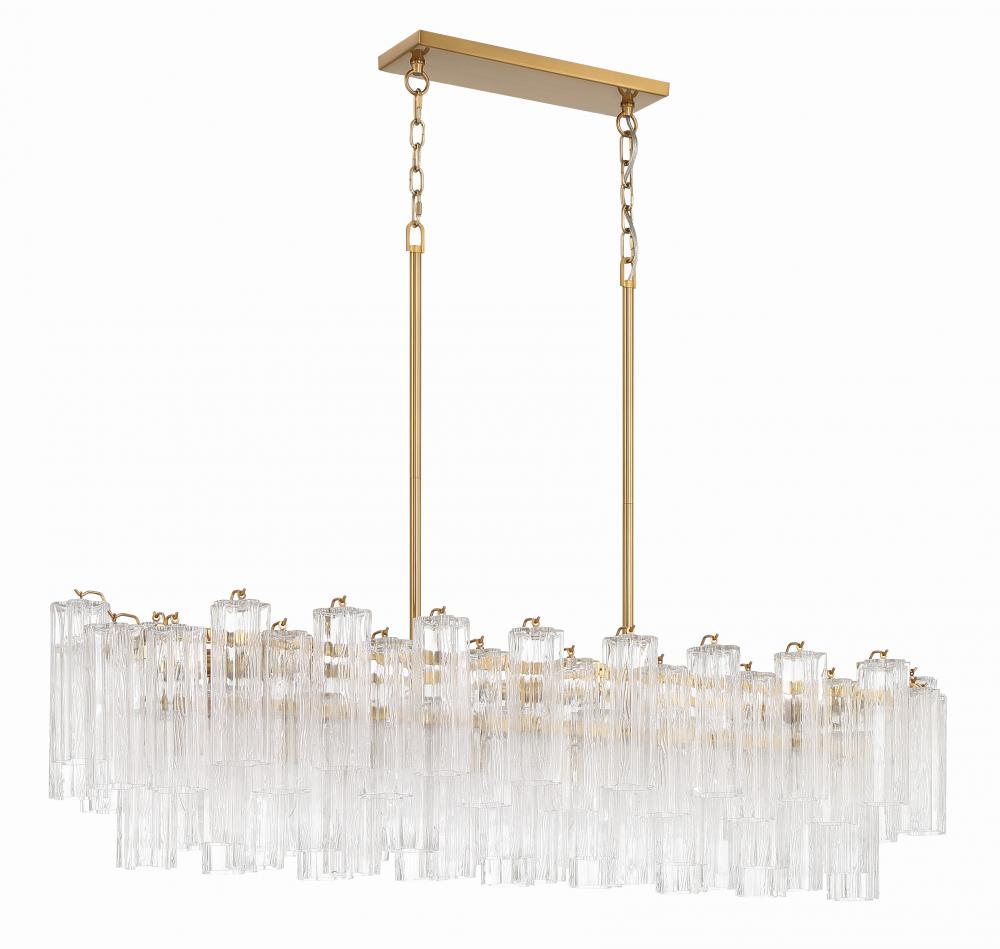 The captivating Addis Lighting Collection is a modern-day interpretation of the iconic mid-century Tronchi chandelier. Inspired by its predecessor's sleek lines and geometric shapes, the Addis features a polished Chrome or Aged Brass metal frame that exudes sophistication and style. Its unique design showcases transparent tiers of textured Tronchi glass tubes, forming a mesmerizing 5-point rounded star shape. Choose from a range of glass colors, including clear, amber, smoke, and white, or the stunning Autumn option, which features a captivating multicolor disposition of amber, clear, and smoke Tronchi glass. The Addis Lighting Collection offers various sizes and finishes, allowing you to find the perfect fit for your space while adding a touch of timeless elegance.