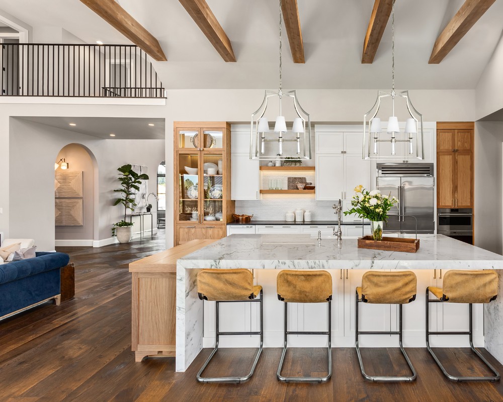 Combines modern style with traditional design, defined by a tonal, textural, monochromatic, and minimal aesthetic.