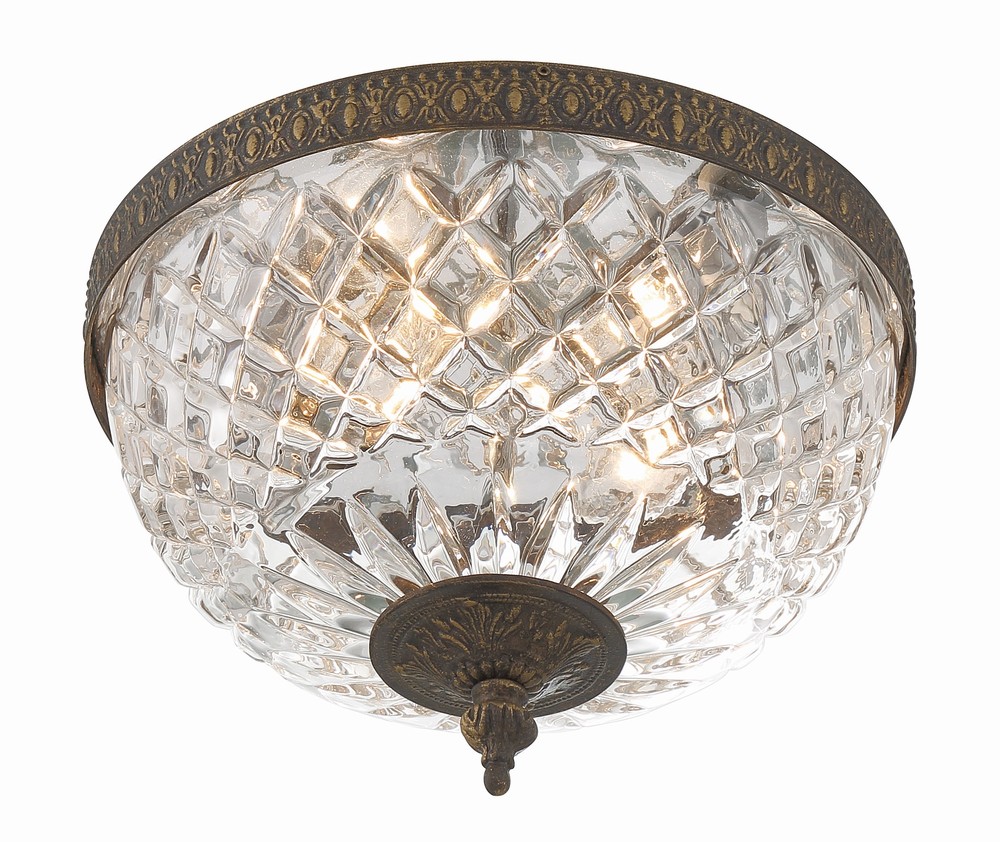 Radley 10'' English Bronze Faceted Cut Glass Bowl Flush Mount