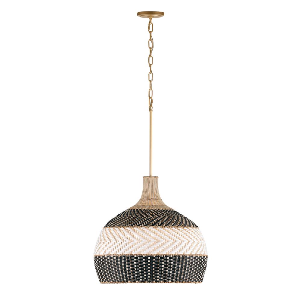 The Zanzibar Collection is an embodiment of laid-back luxe and thoughtful simplicity. By marrying the natural textures of natural rattan with white and/or black lanyard, the fixture introduces a striking color palette with a soft gold finish that instantly brings comfort and style to a living space Handcrafted with precision, the intricate weave introduces texture and depth to your décor. Whether suspended over a breakfast nook or in pairs above a kitchen island, the Zanzibar exudes an earthy, elegant charm that brings an artisanal touch to your decor.