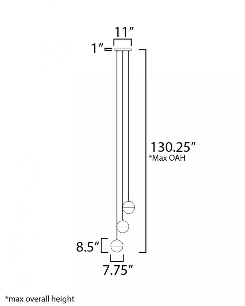 Spun metal semi spheres finished in Satin Nickel, Metallic Gold or Matte Black, cap a Satin White glass shade. Installed into each fixture is an omni-directional LED bulb that evenly illuminates the glass while providing long life operation.
