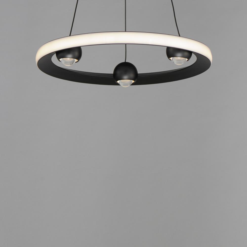 Introducing a new take on the now classically modern LED ring, large illuminated spheres act as "nodes" to support the tapered aluminum channel while also providing additional down light. Featuring a CCT selectable switch, the collection convenient