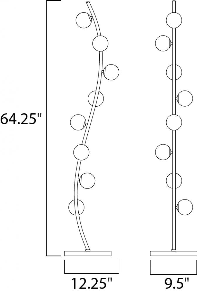 A gently curved, tapered rod finished in Metallic Gold is adorned with several Satin White glass balls and illuminated by integrated LED. The Rover collection is the interpretation of an organically formed brach with buds of white glass that is sure to add