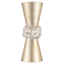 Sconce in a silver leaf finish featuring hundreds of rough cut crystal glass gems that refract light in a manner reminiscent to the cirrus clouds ice crystals that form the lunar halo in the frozen night sky. Also available in champagne tinted gold leaf or matte black.