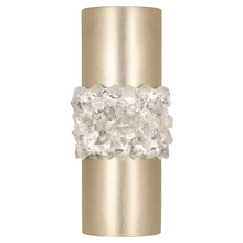 Sconce in a silver leaf finish featuring hundreds of rough cut crystal glass gems that refract light in a manner reminiscent to the cirrus clouds ice crystals that form the lunar halo in the frozen night sky. Also available in champagne tinted gold leaf or matte black.