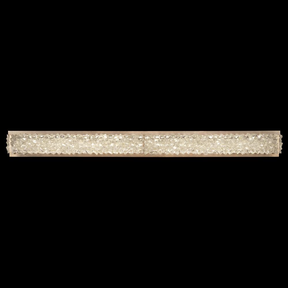Luxury LED bath fixture in a champagne tinted gold leaf finish featuring hundreds of rough cut crystal glass gems that refract light in a manner reminiscent to the cirrus clouds ice crystals that form the lunar halo in the frozen night sky. Also available in platinized silver leaf or matte black.