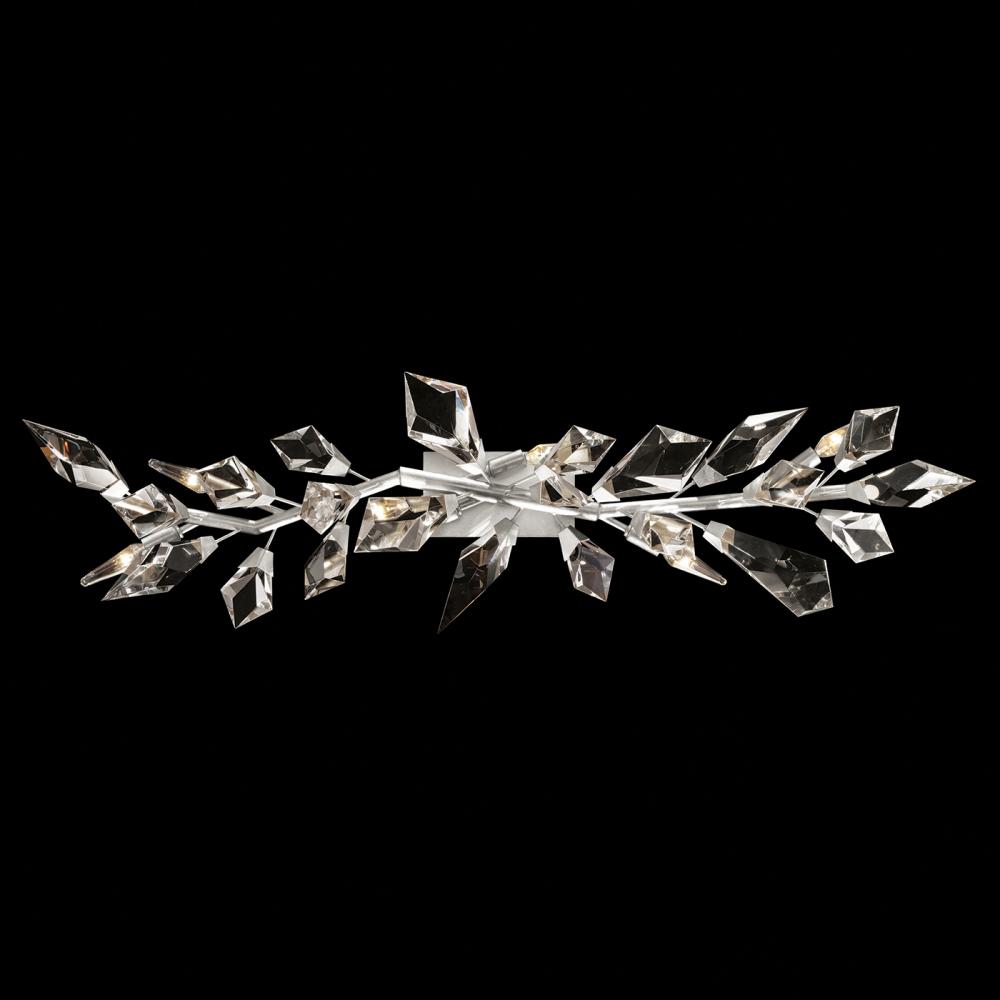 Inspired by nature and its majestic forests, this silver leafed luxury LED bath fixture features modern branches adorned with bold, hand-cut faceted crystal leaves. Also available in gold leaf. Includes decorative bulb(s).