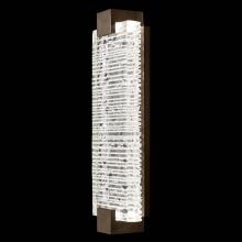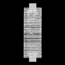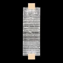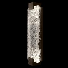 Indoor aluminum sconce features a three-dimensional contrast of deep textured and polished cast glass. This stunning landscape of the glass, illuminated by waterproof LEDs, is available in clear or highlighted with antiqued gold leaf (shown). Choice of three finishes, champagne tinted gold leaf finish or silver leaf for indoor only, and a hand rubbed black iron for indoor and outdoor use.