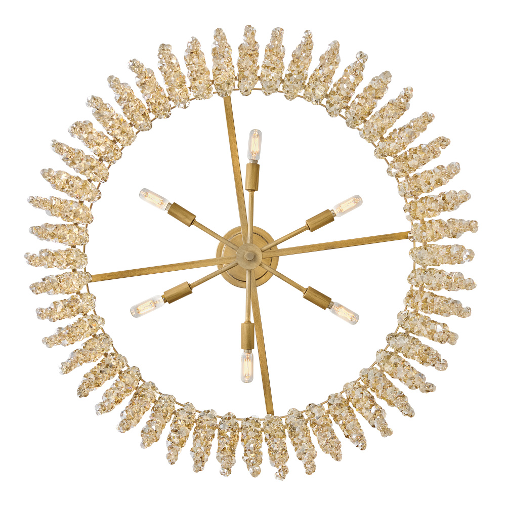 Dripping with glamour, Rubina’s magnificent shade is crafted from individually strung strands of sparkling crystal. A traditional tiered frame accentuates every beautiful refraction with its Burnished Gold finish.