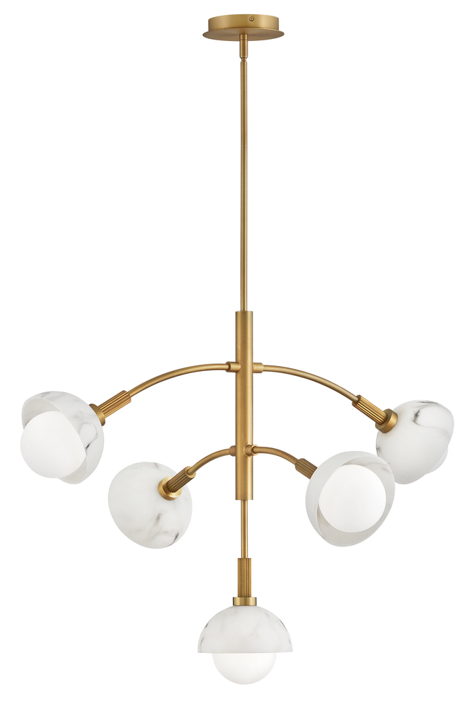 Opposing influences balance Phoebe's multi-tier chandelier with a transitional twist. This dynamic modern-style design commands attention with ribbed stem detail, faux alabaster and cased opal glass combination, and bold Black Oxide or Heritage Brass finish options.