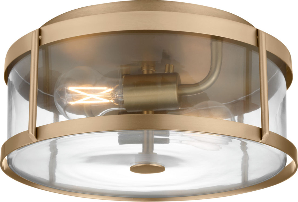 The Lumra 13" Flush Mount features a cylindrical drum form defined by clear glass panels set within a structured metal frame. Open sightlines allow full visibility of the lamping, emphasizing its straightforward construction and balanced proportions. suited for dining rooms, kitchens, and entryways, Lumra offers versatile illumination with a modern, functional profile.
