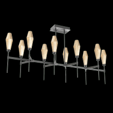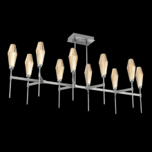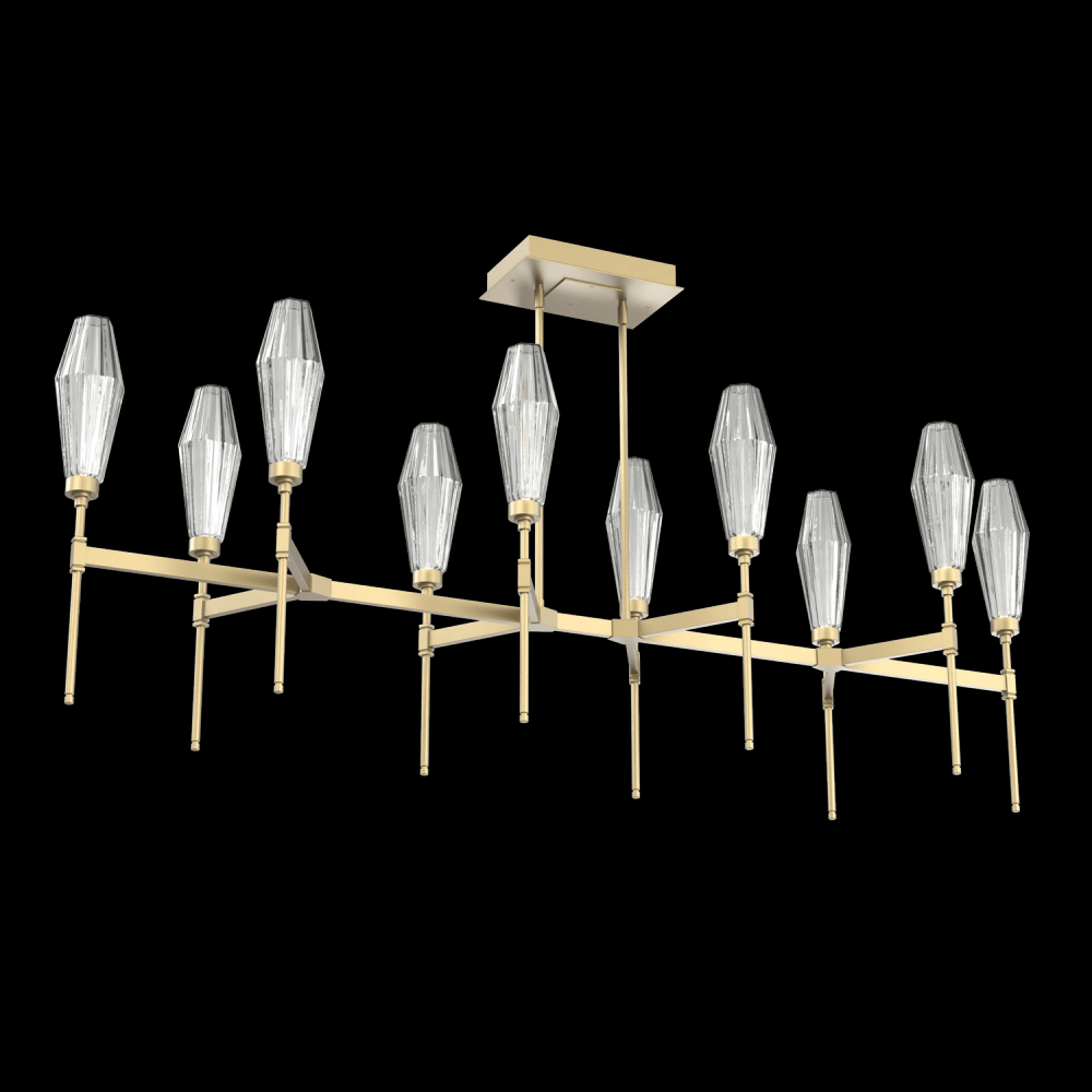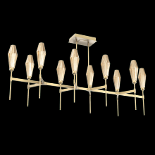 Aalto Linear Suspension - 67 - Gilded Brass - Optic Rib Blown Glass - Smoke - Threaded Rod (24,12 (2x),6,3) - LED - 2700K