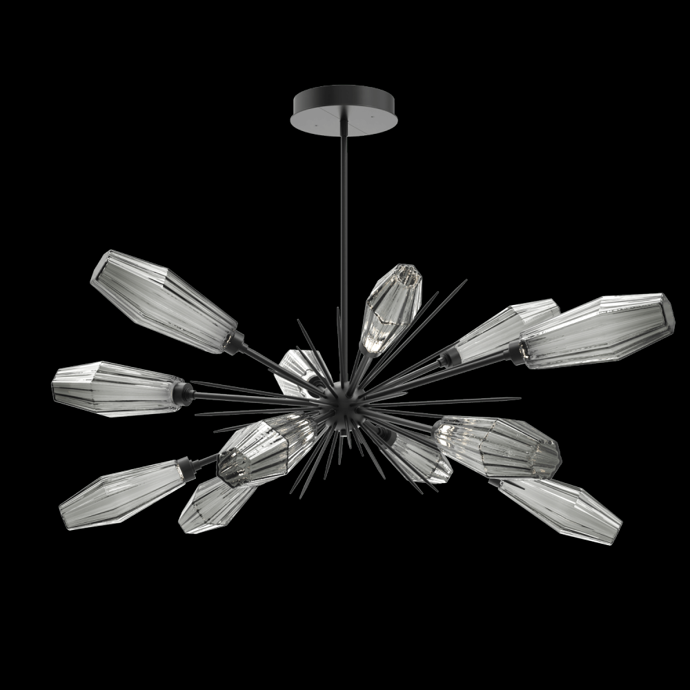 Aalto Oval Starburst - 0A - Matte Black - Optic Rib Blown Glass - Smoke - Threaded Rod (24,12 (2x),6,3) - LED - 2700K