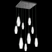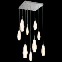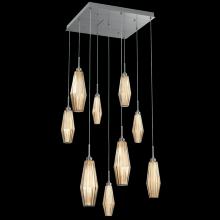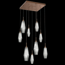 Aalto Square Multi - Port - Gilded Brass - Optic Rib Blown Glass - Bronze - Cloth Braided Cord - LED - 2700K