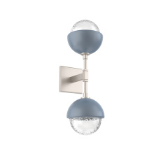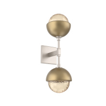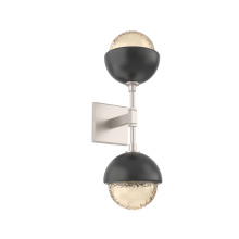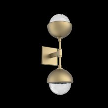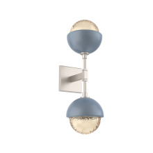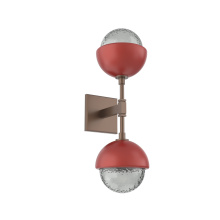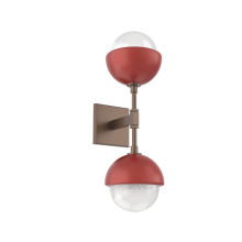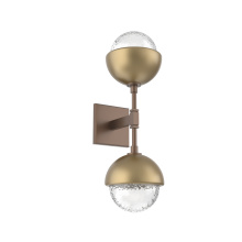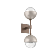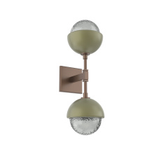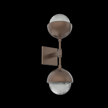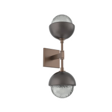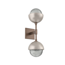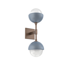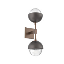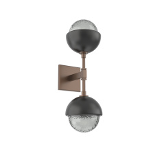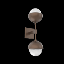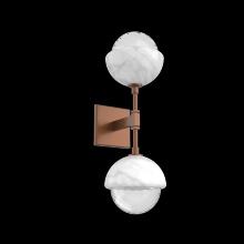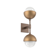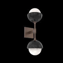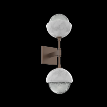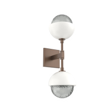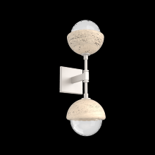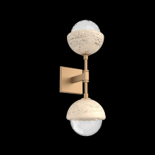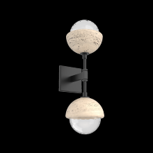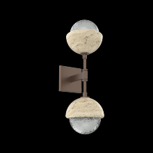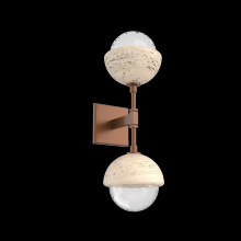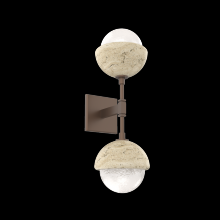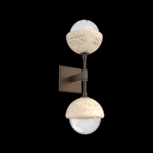 Cabochon Double Sconce - Flat Bronze - White Glass Lens - LED - 3000K - Travertine Stone