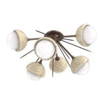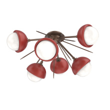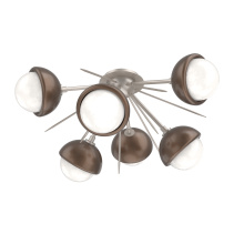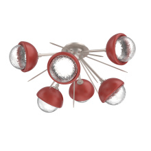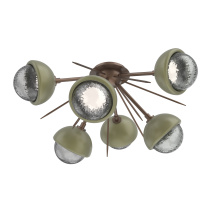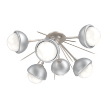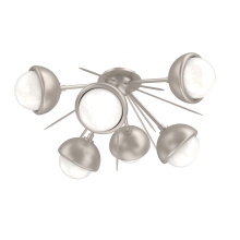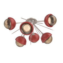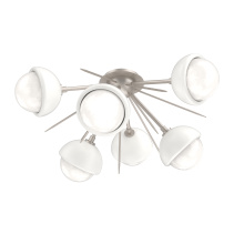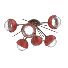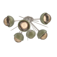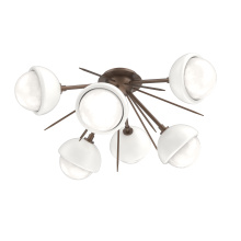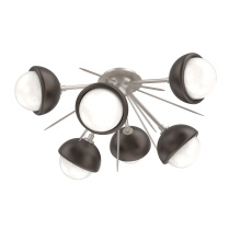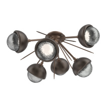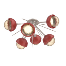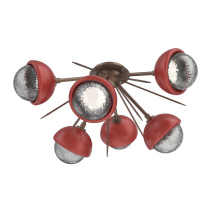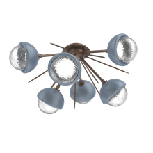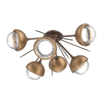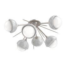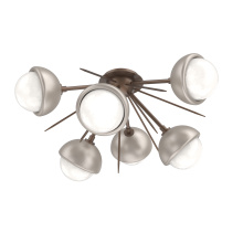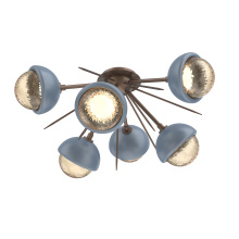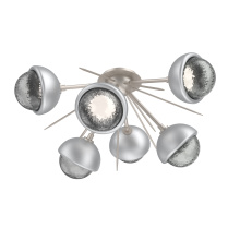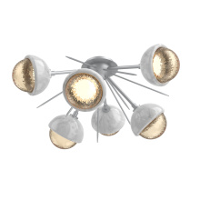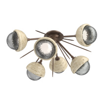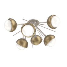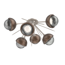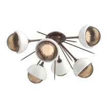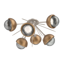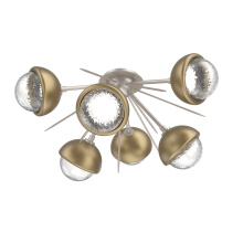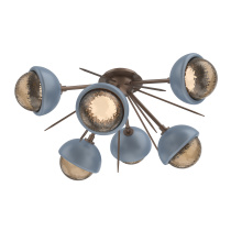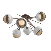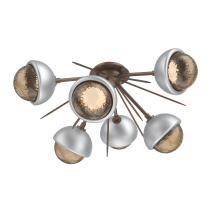 This whimsical sputnik-style flush mount is a celebration of organic and mid-century style. It features six Cabochon sculptural fusions of artisan blown crystal glass and polished stone or metalwork in a colorful selection of single and two-tone finishes.
