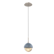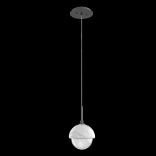 Cabochon Pendant-Matte Black-Clear Glass with White Marble-Cloth Braided Cord-LED 3000K