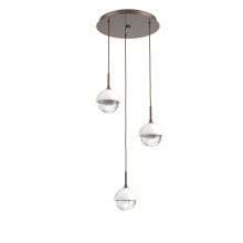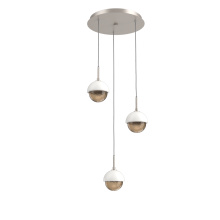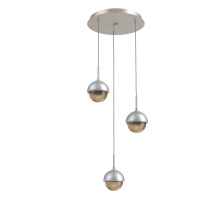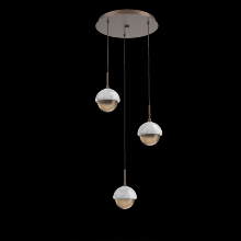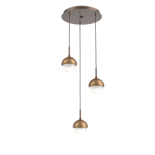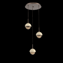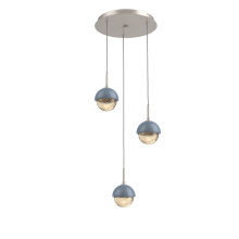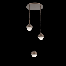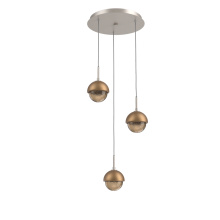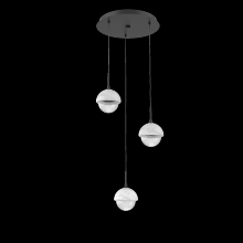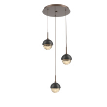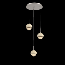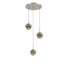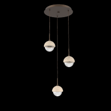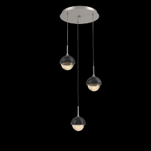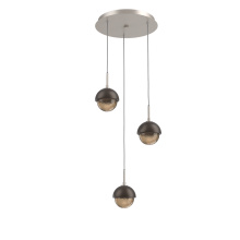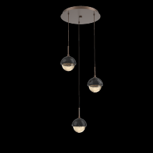 Cabochon Round 3pc Multi - Pendant - Gilded Brass - Clear Blown Glass - Cloth Braided Cord - LED - 3000K - Black Marble
