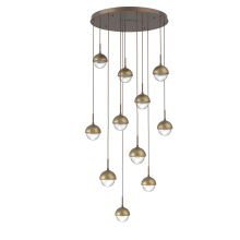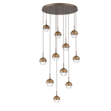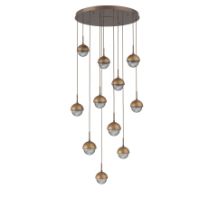 Cabochon 11pc Multi-Pendant-Burnished Bronze-Clear Glass with Travertine-Cloth Braided Cord