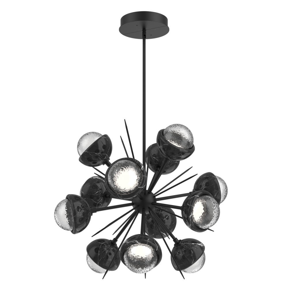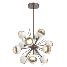 The Cabochon Starburst Chandelier elevates a familiar silhouette with a fresh modern update to the visual intrigue of this time-honored gemstone style. The sculptural fusion features artisan blown crystal glass and polished stone or metalwork in a colorful selection of single and two-tone finishes.