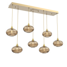 Coppa Linear Multi - Port - Gilded Brass - Amber Optic Blown Glass - Cloth Braided Cord - Incandescent E26 Socket
