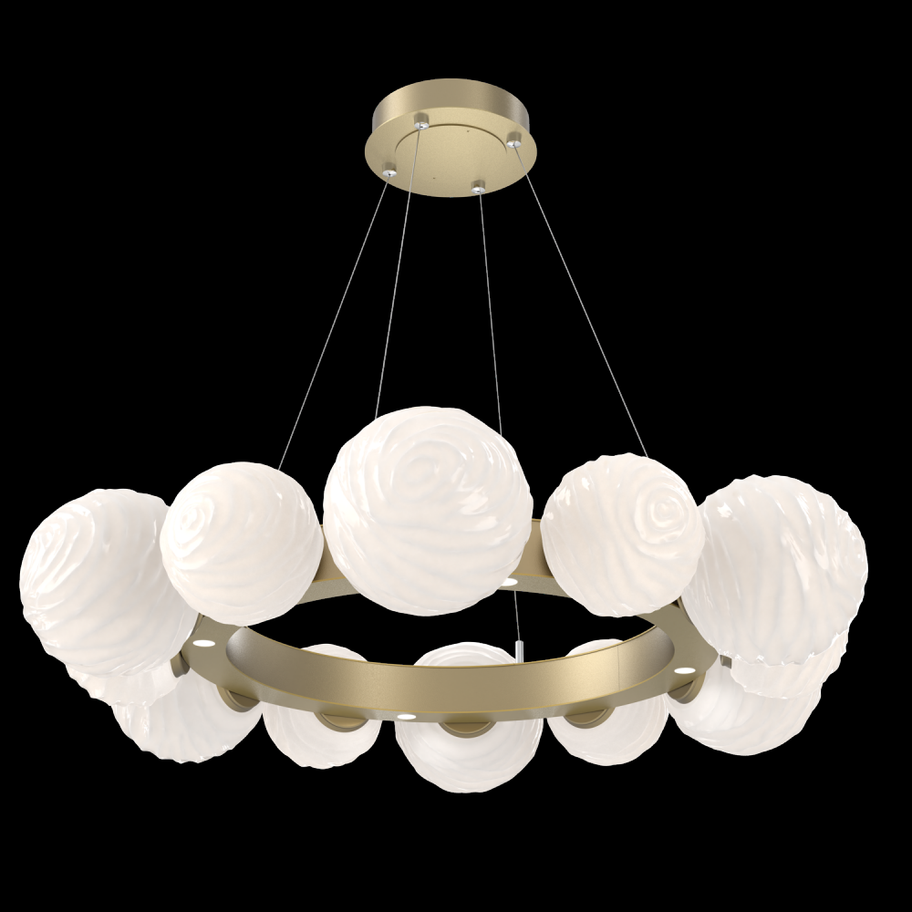 Gaia 39 - inch Radial Ring - Gilded Brass - White Glass Lens - Stainless Cable - LED - 3000K