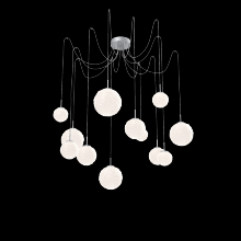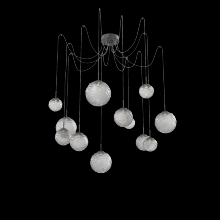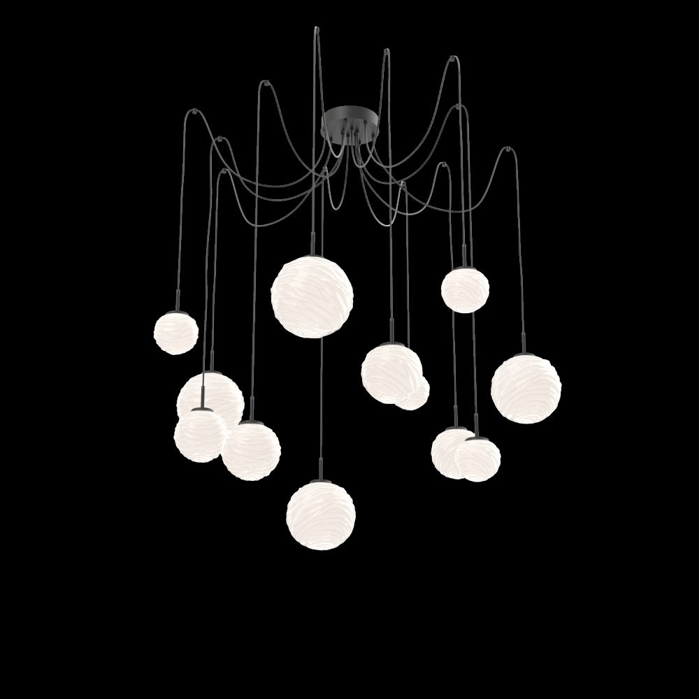Gaia Round 12pc Swag Multi - Pendant - Matte Black - White Glass Lens - Cloth Braided Cord - LED - 3000K