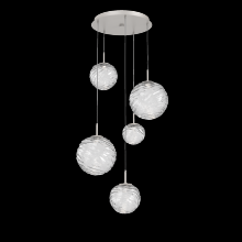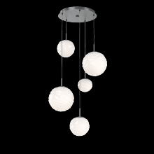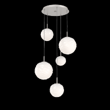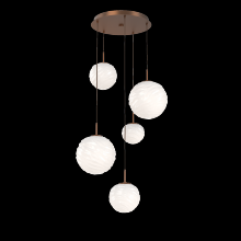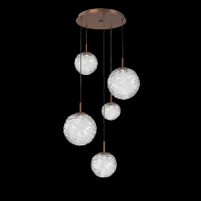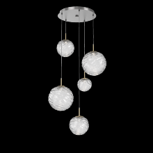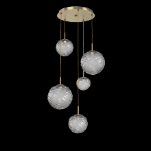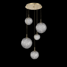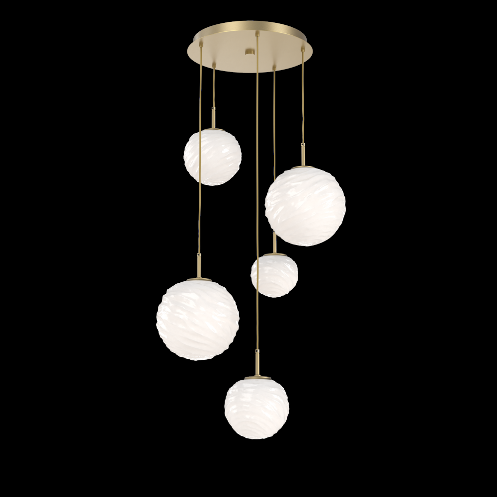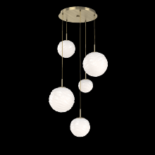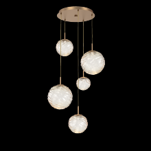 Gaia 5pc Round Multi - Pendant - Gilded Brass - White Glass Lens - Cloth Braided Cord - LED - 3000K