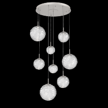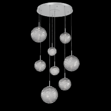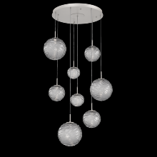 Gaia 8pc Round Multi - Pendant - Classic Silver - White Glass Lens - Cloth Braided Cord - LED - 3000K