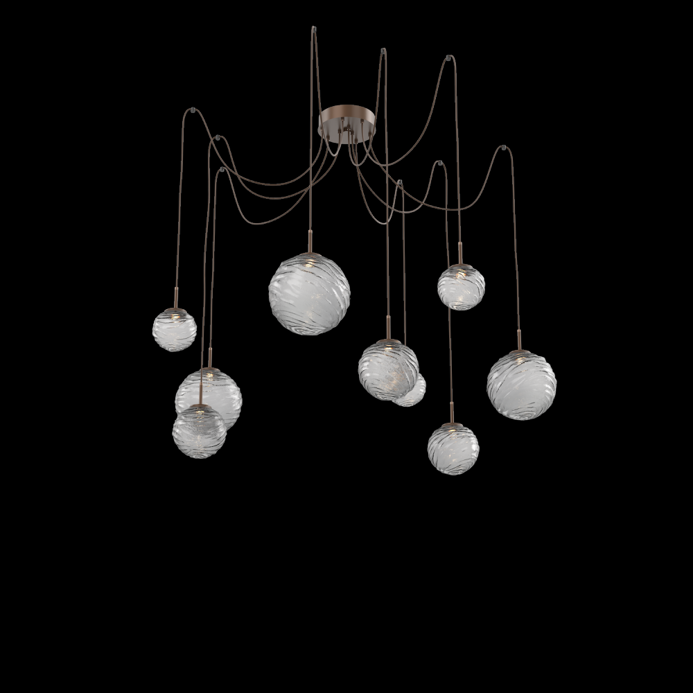 Gaia Round 9pc Swag Multi - Pendant - Burnished Bronze - Smoke Blown Glass - Cloth Braided Cord - LED - 3000K