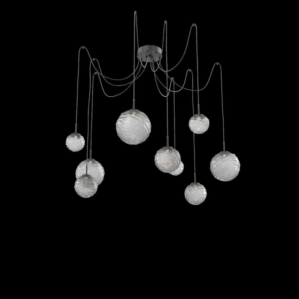 Gaia Round 9pc Swag Multi - Pendant - Matte Black - Smoke Blown Glass - Cloth Braided Cord - LED - 3000K