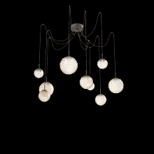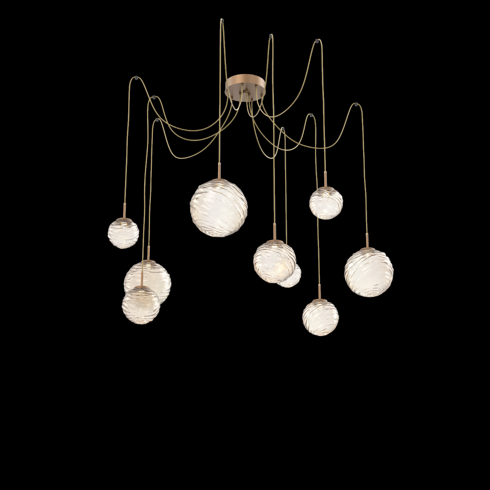 Gaia Round 9pc Swag Multi - Pendant - Novel Brass - Amber Blown Glass - Cloth Braided Cord - LED - 3000K