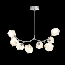 Gem 8pc Branch-Metallic Beige Silver-Blown Glass Gem - Amber-Threaded Rod Suspension-LED - Ready to Ship