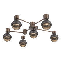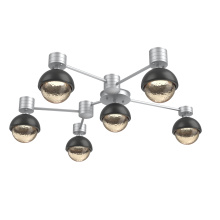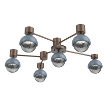 Suitable for both walls and ceilings, this modular design features the Cabochon collection. This sculptural fusion of artisan blown crystal glass and polished stone or metalwork in a colorful selection of single and two-tone finishes creates a captivating focal point on any interior surface.