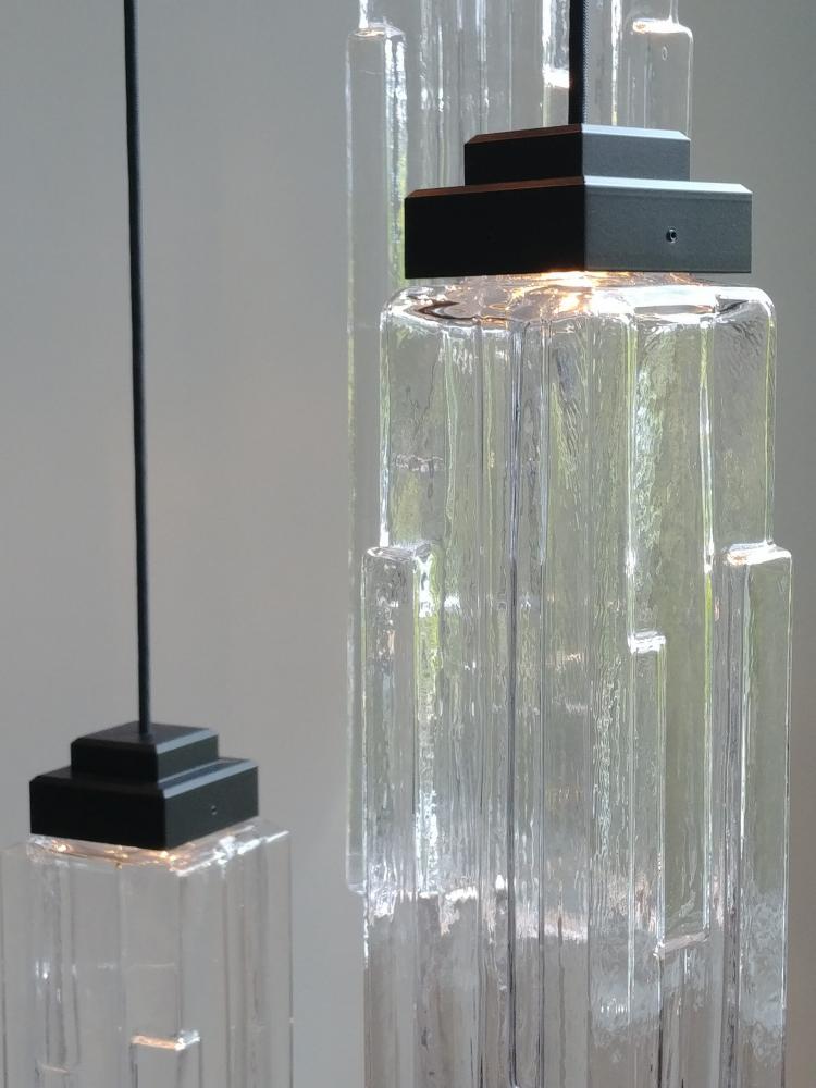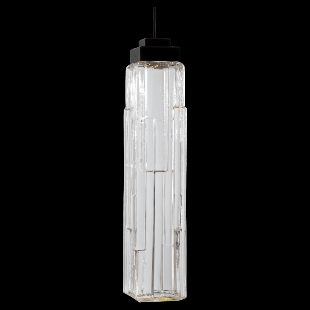 Ledgestone Pendant - Burnished Bronze - Novel Brass - Ledgestone Blown Glass - Clear - Cloth Braided Cord - LED - 3000K