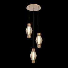 Mandrel Round 3pc Multi-Pendant - Aalto-Burnished Bronze-Amber Blown Glass-Cloth Braided Cord-LED - 3000K