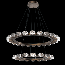 Pebble DoubleRing 36" & 48" Small Glass-Heritage Brass-Pebble Clear-Stainless Cable-LED 2700K