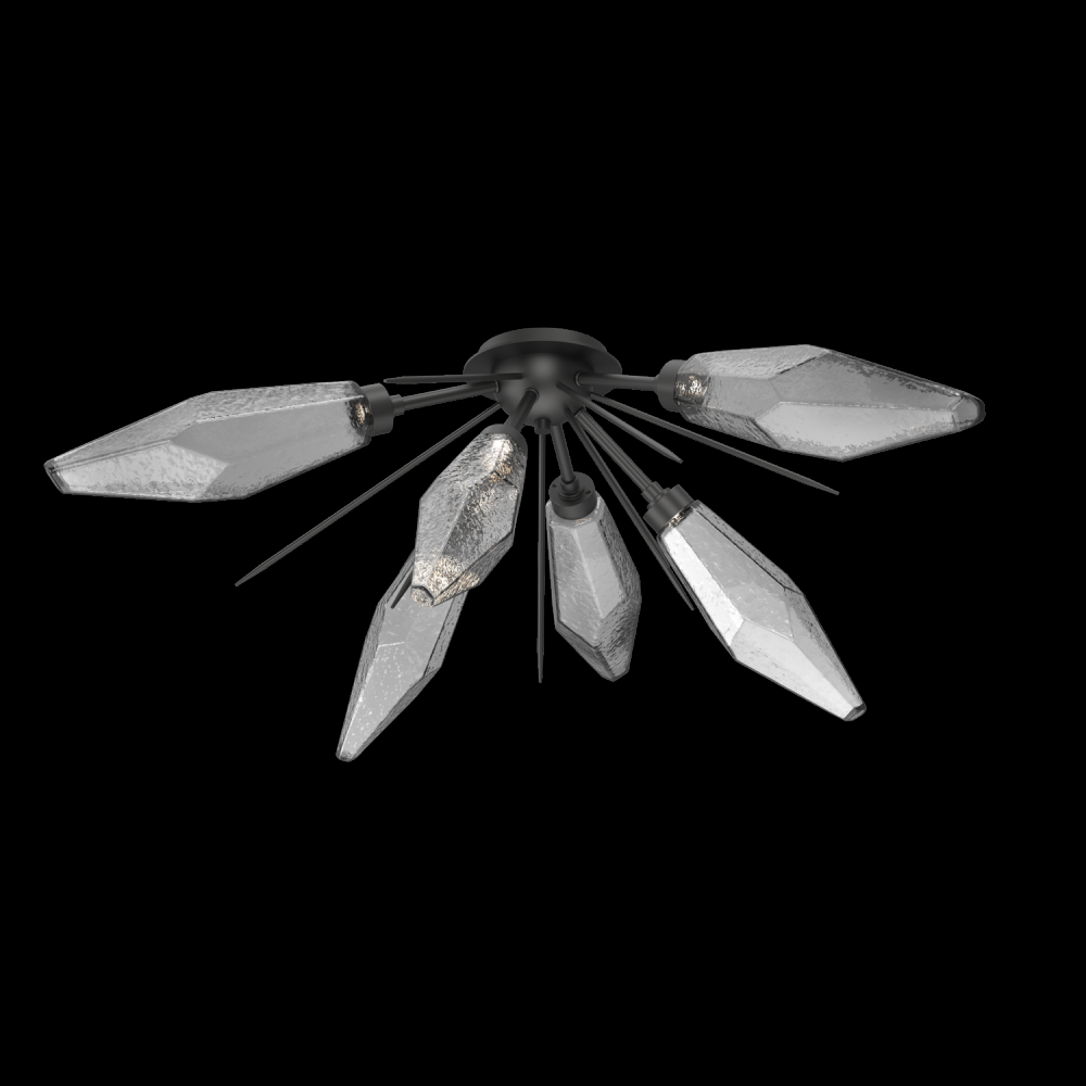 Rock Crystal Flush Starburst - Matte Black - Chilled Blown Glass - Smoke - LED - 2700K